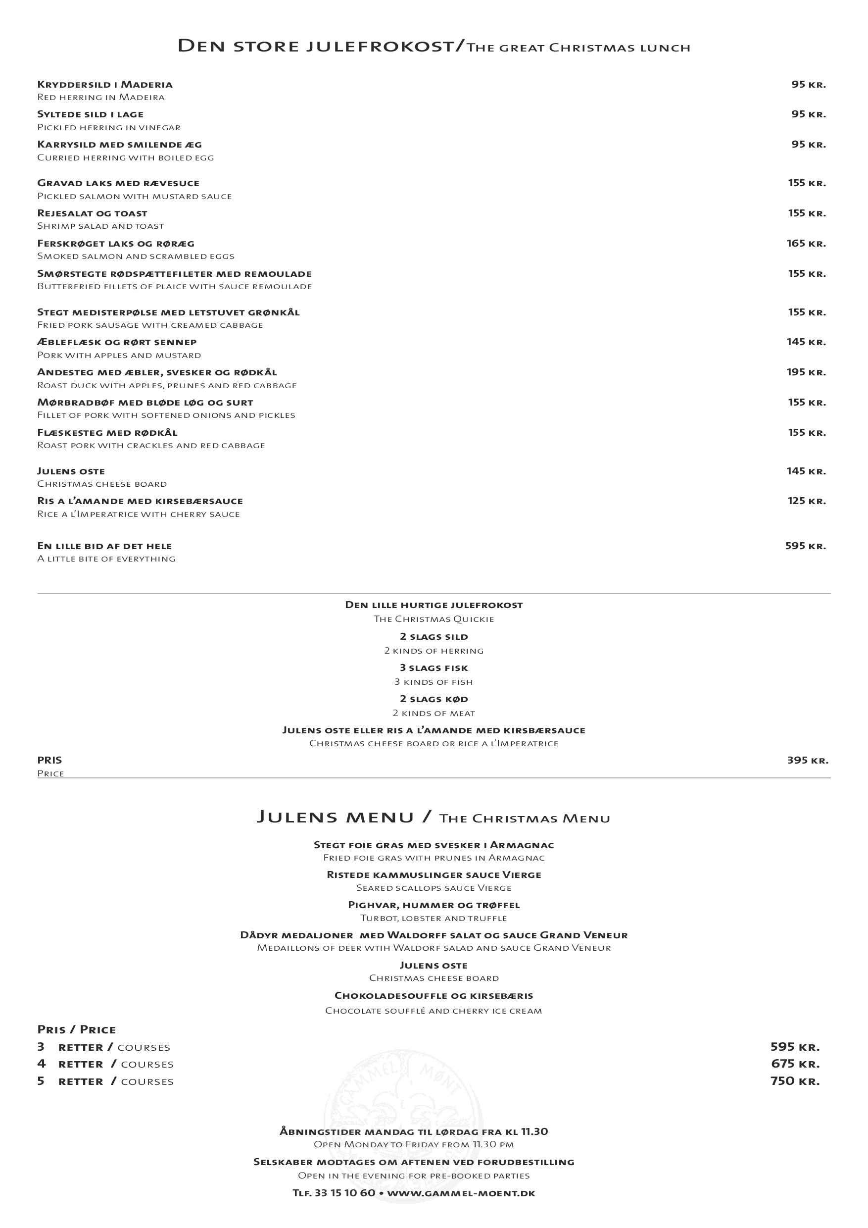 Er du derimod til klassisk dansk julefrokost tilsat mulighed for ekskursioner udi rare sager som pighvar, æbleflæsk, andesteg, flæskesteg, sild, foie gras og ris a l’amande