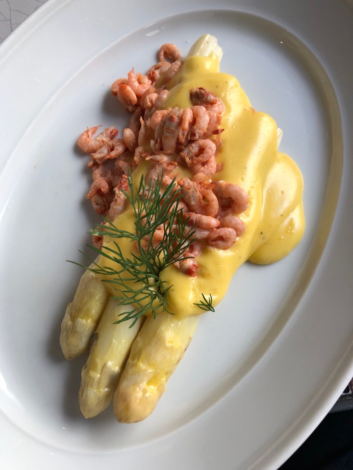 Asparges, fjordrejer og sauce mouseline