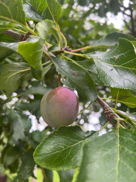 På mit blommetræ i haven bugner det med blommer.