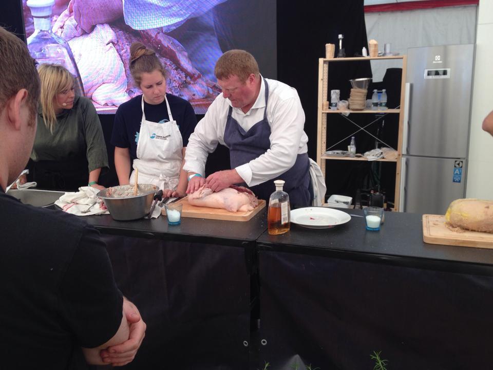 Den Røde huserede i Århus i går. På Food Festivallens Gastronomiscene instruerede han Marie Frank i kunsten at lave Ballotine af and med foie gras. På torsdag er han tilbage på Gammel Mønt.
